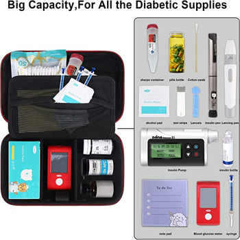 Hard materials of this diabetic organizer case Shields all your diabetic accessories from impact, especially while you are on the move. soft fabric lining prevents scratches to your blood sugar testing supplies.