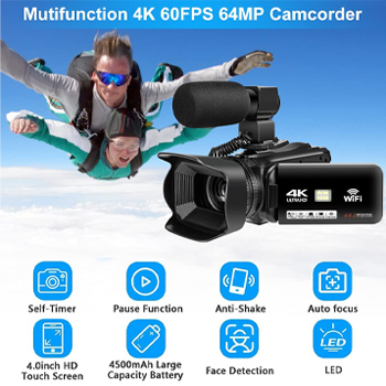 Ultra HD 4K 64MP & 60FPS Camcorder: 4K Ultra HD 60PFS video resolution, 64MP image resolution,18X digital zoom.